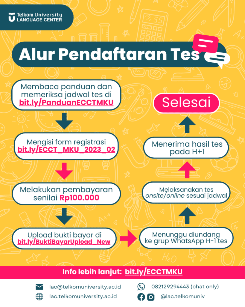 Dengan tarif tes senilai Rp100.000, para peserta dapat mengikuti tes sesuai jadwal yang dipilih dan akan mendapatkan skor serta sertifikat tes pada H+1 hari kerja setelah tanggal tes. Berikut rincian tes ECCT: