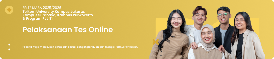 ● Tes EPrT® MABA 2025/2026 Kampus Jakarta, Surabaya, Purwokerto dan Program PJJ S1 dilaksanakan secara daring.