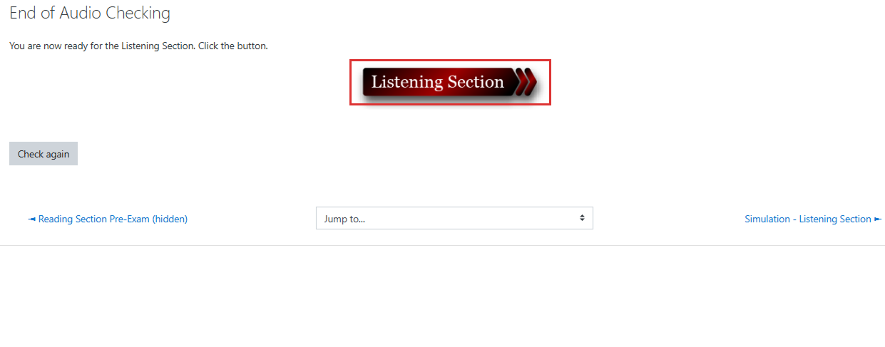 Make sure the earphone/headphone that you will be using is not wireless and working properly to the audio in the Listening section.