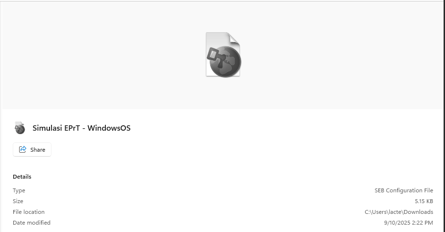 5. Double-click the downloaded file, make sure the name of the file is “Simulasi EPrT – WindowsOS.seb”.