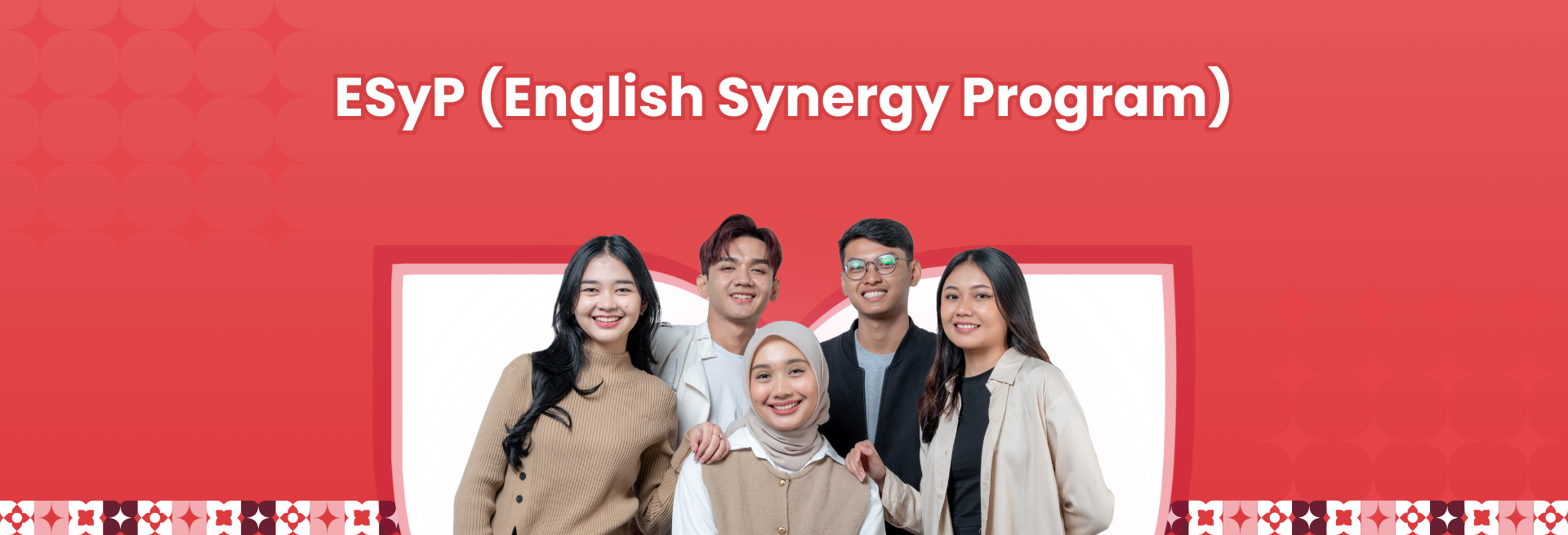ESyP (English Synergy Program) is a mentoring program designed to improve the English skills of international class freshmen (1st year). This program helps students to be better prepared to actively participate in learning activities and take part in various international programs. Conducted during the first and second semesters (1 academic year), ESyP classes are held twice a week with each session lasting 100–120 minutes.