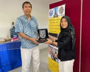 (Serah terima cinderamata Pusat Bahasa Universitas Telkom dan Pusat Bahasa Universitas Ngurah Rai Bali)