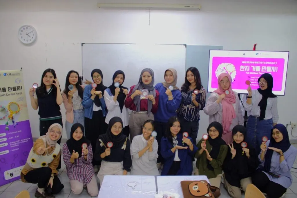 King Sejong Institute Bandung 2 (KSI Bandung 2) telah melaksanakan acara budaya dengan judul “한지 거울 만들자! Yuk Membuat Cermin Hanji!” pada hari Jumat, 21 Februari 2025 lalu. Acara ini dilaksanakan secara onsite pada pukul 13:30 – 15:30 WIB di Ruang 02.04, Language Center, Grha Cacuk Sudarijanto-A. Tujuan diadakannya acara ini yaitu untuk memperkenalkan kerajinan Hanji, sebagai salah satu budaya Korea kepada civitas Tel-U.