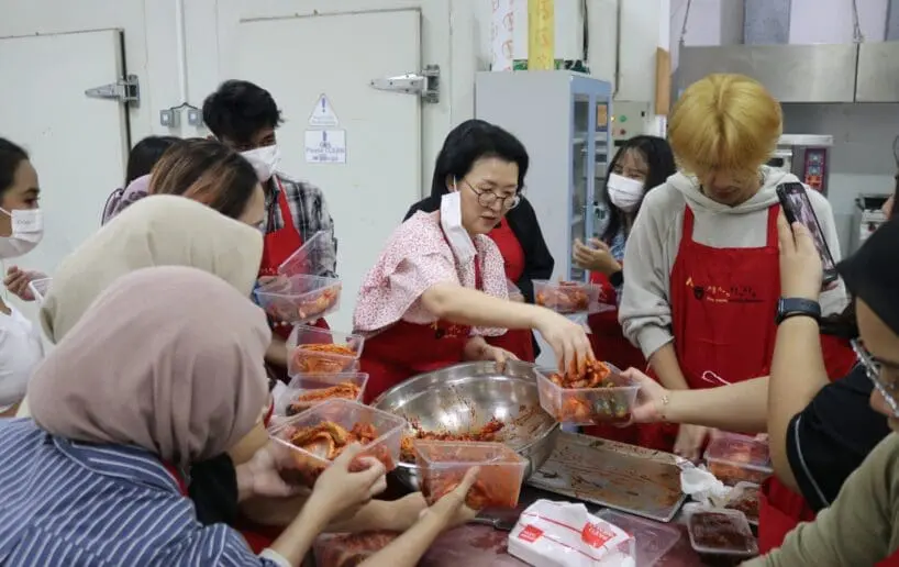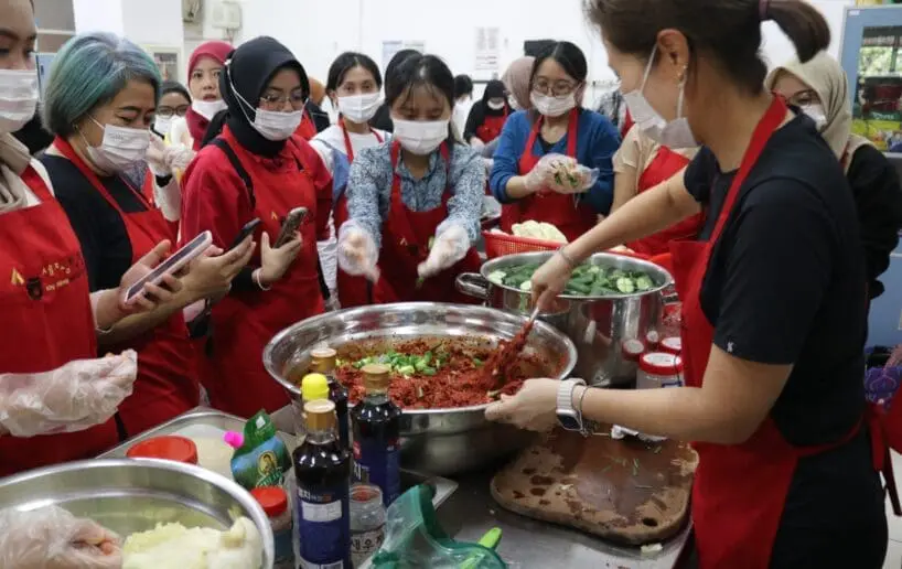 Para peserta membuat kimchi bersama-sama