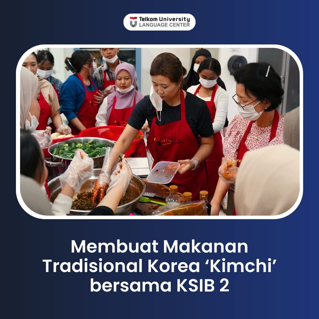 Pada kesempatan kali ini, King Sejong Institute Bandung 2 telah mengadakan acara budaya berjudul 한국 전통 음식: 김치 만들기 (Makanan Tradisional Korea: Membuat Kimchi). Acara ini dilaksanakan pada tanggal 16 November 2024 di Lab Kitchen & Restaurant Gedung Fakultas Ilmu Terapan Universitas Telkom Bandung. Peserta dari acara ini terdiri dari Civitas Academica Tel-U dan umum, dengan kuota peserta yang terbatas. Acara ini tidak dipungut biaya dengan total peserta yang mengikuti acara ini yaitu 29 orang.