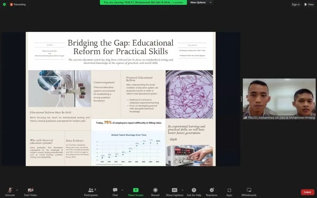 Telkom University Language Center (LaC) menjadi pelaksana pelatihan Academic Writing untuk Politeknik Siber dan Sandi Negara (Poltek SSN). Pelatihan ini dilaksanakan secara daring selama 16 pertemuan, mulai dari tanggal 15 Maret 2024 hingga 17 Juli 2024, setiap hari Jumat pukul 10.00 – 11.30 WIB. Pelatihan ini terdiri dari 6 kelas yang masing-masing kelasnya berjumlah 19 – 21 mahasiswa. Dari 6 kelas tersebut, 3 kelas diantaranya merupakan mahasiswa jurusan Rekayasa Keamanan Siber (RKS), 1 kelas mahasiswa jurusan Rekayasa Perangkat Keras Kriptografi (RPK), 1 kelas mahasiswa jurusan Rekayasa Perangkat Lunak Kriptografi (RPLK), dan 1 kelas lagi jurusan Rekayasa Sistem Kriptografi (RSK).