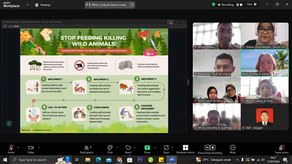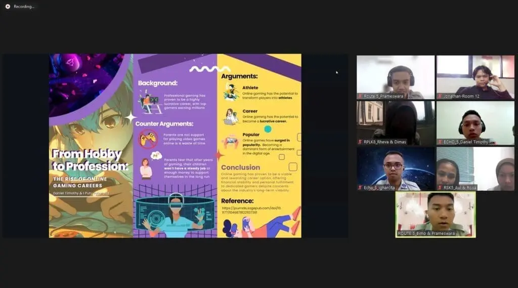 Pada kelas Academic Writing ini, para peserta mempelajari materi mengenai introduction, overview, and detail of a graph, chart, and table; students’ presentation; writing a thesis statement and an introductory paragraph; writing an argument (topic sentence + supporting details); incorporating data in a paragraph; writing a counter argument (topic sentence + supporting details); writing a concluding paragraph; essay review; poster-making; dan poster presentation.