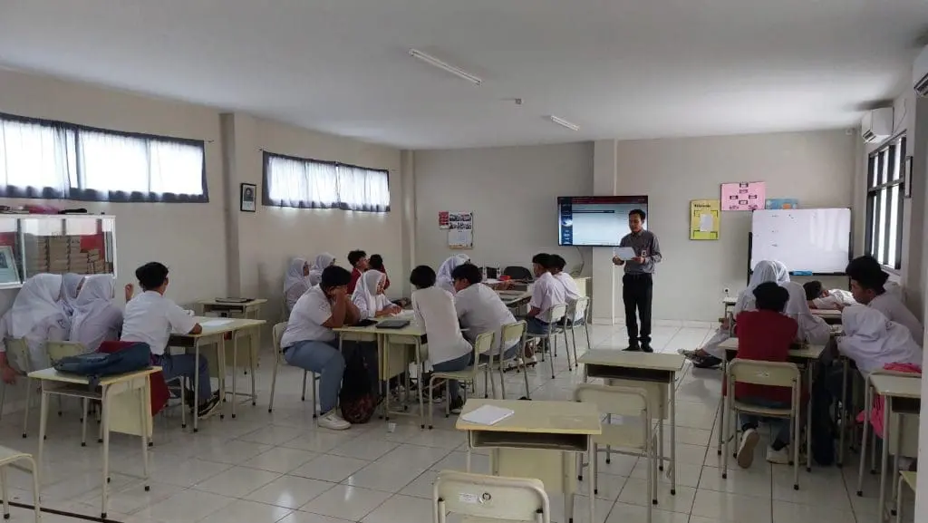 Siswa siswi SMA Telkom Sekar Kemuning Cirebon sedang menyimak pembekalan tes EPrT