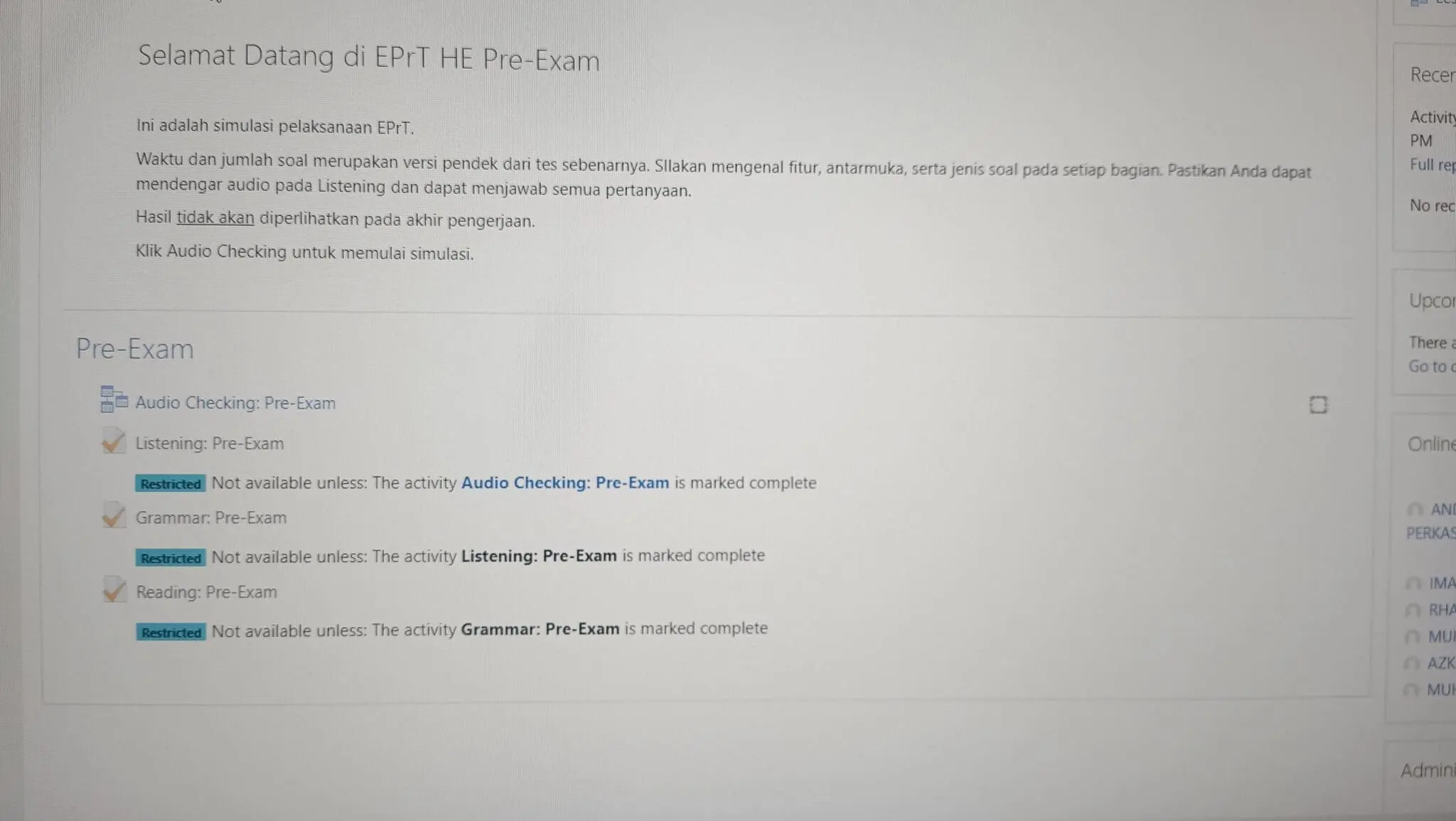 1. Pastikan untuk mempersiapkan lingkungan tes dengan baik: koneksi internet dan kursi meja standar (peserta tanpa kursi meja standar atau lesehan tidak diperkenankan untuk mengikuti tes)