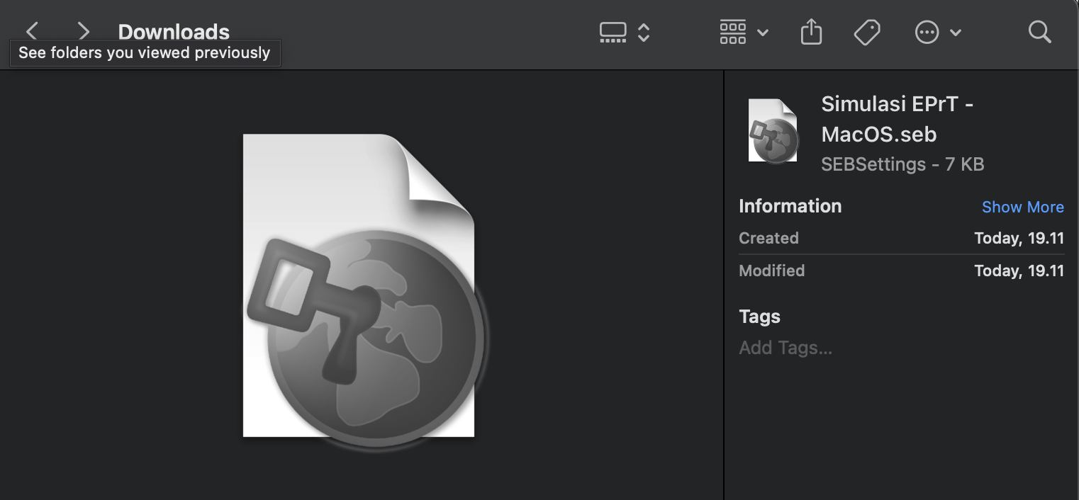 1. Pastikan Anda telah men-download dan meng-install aplikasi SEB pada perangkat laptop yang Anda gunakan saat tes.