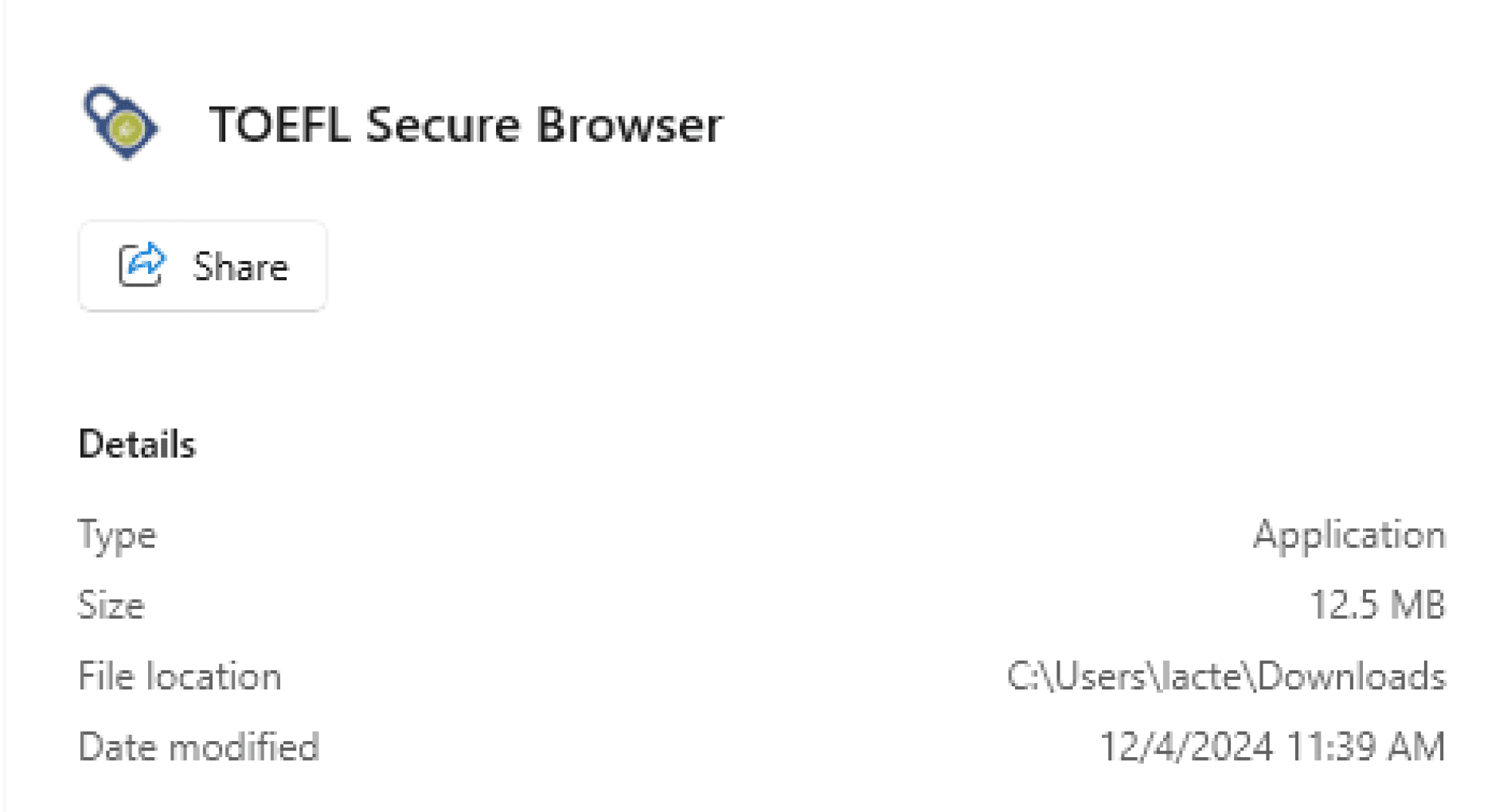 4. Hasil file yang telah di download adalah file TOEFL Secure Browser.exe