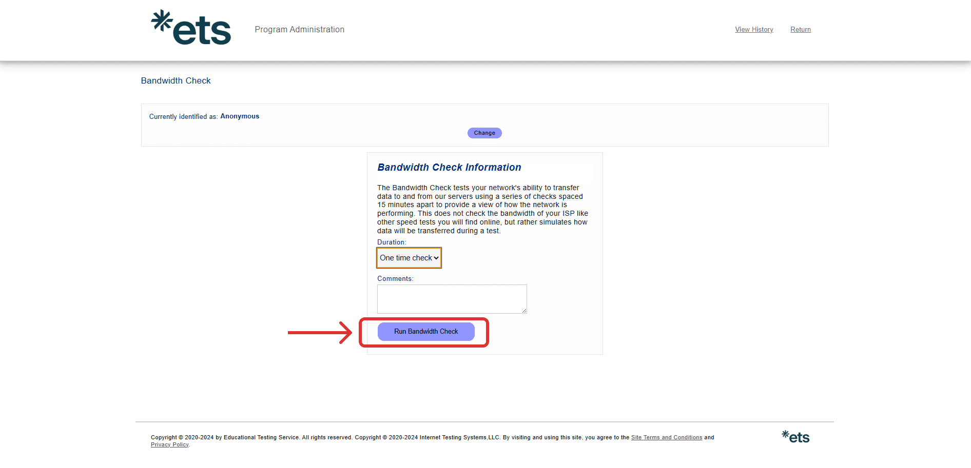 Lakukan Bandwidth Check untuk mengukur kecepatan koneksi internet Anda. Tes ini memantau fluktuasi bandwidth sepanjang hari untuk memastikan koneksi stabil selama tes berlangsung.