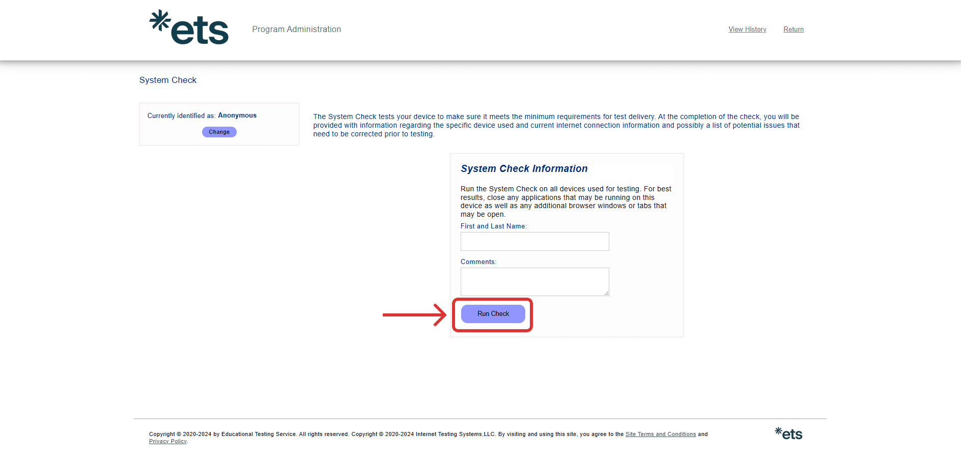 3. 2 Klik “RUN CHECK”. Pada bagian First Name dan Comments, Anda dapat mengosongkannya.