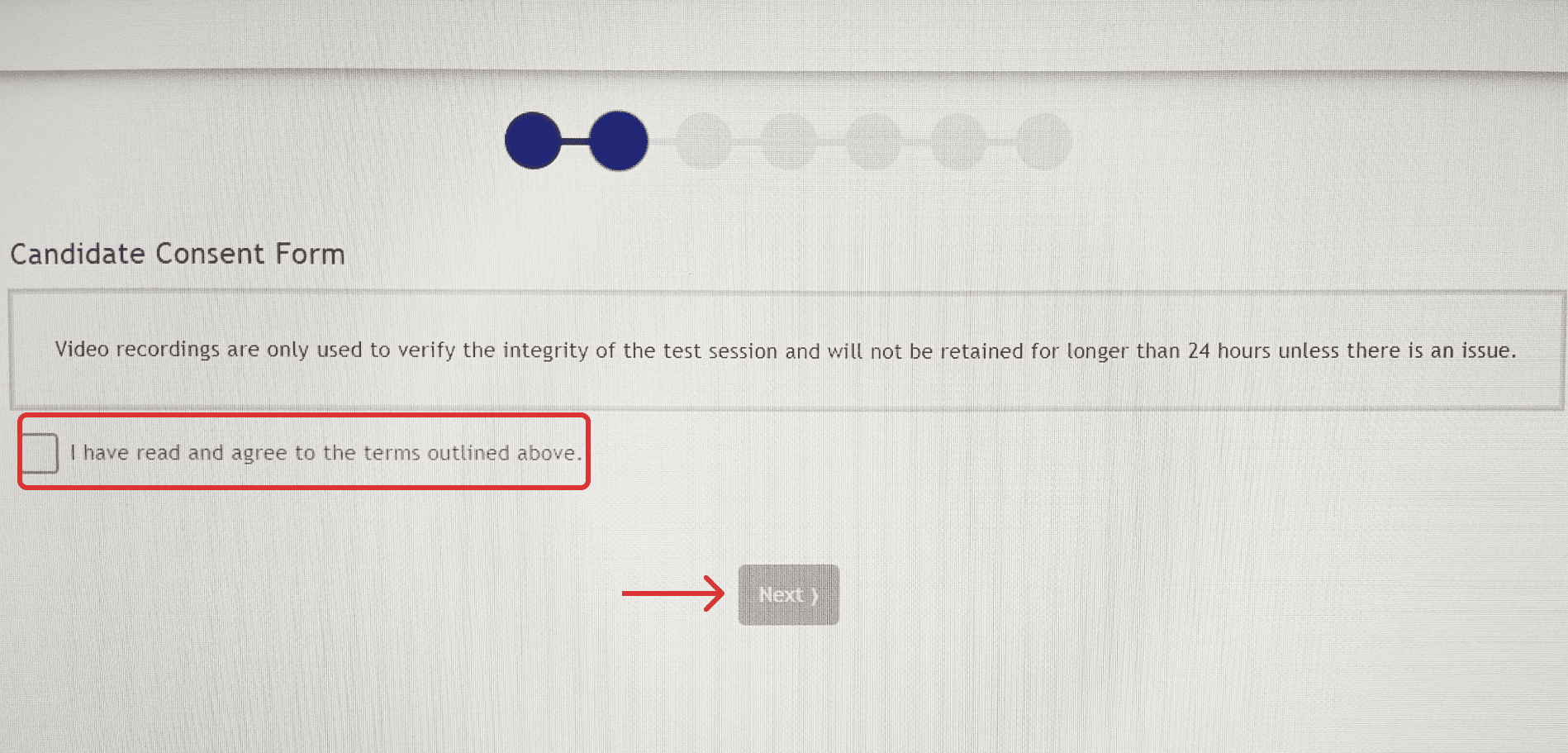 9. Konfirmasi untuk Candidate Consent Form , silakan klik checkbox, lalu klik Next.