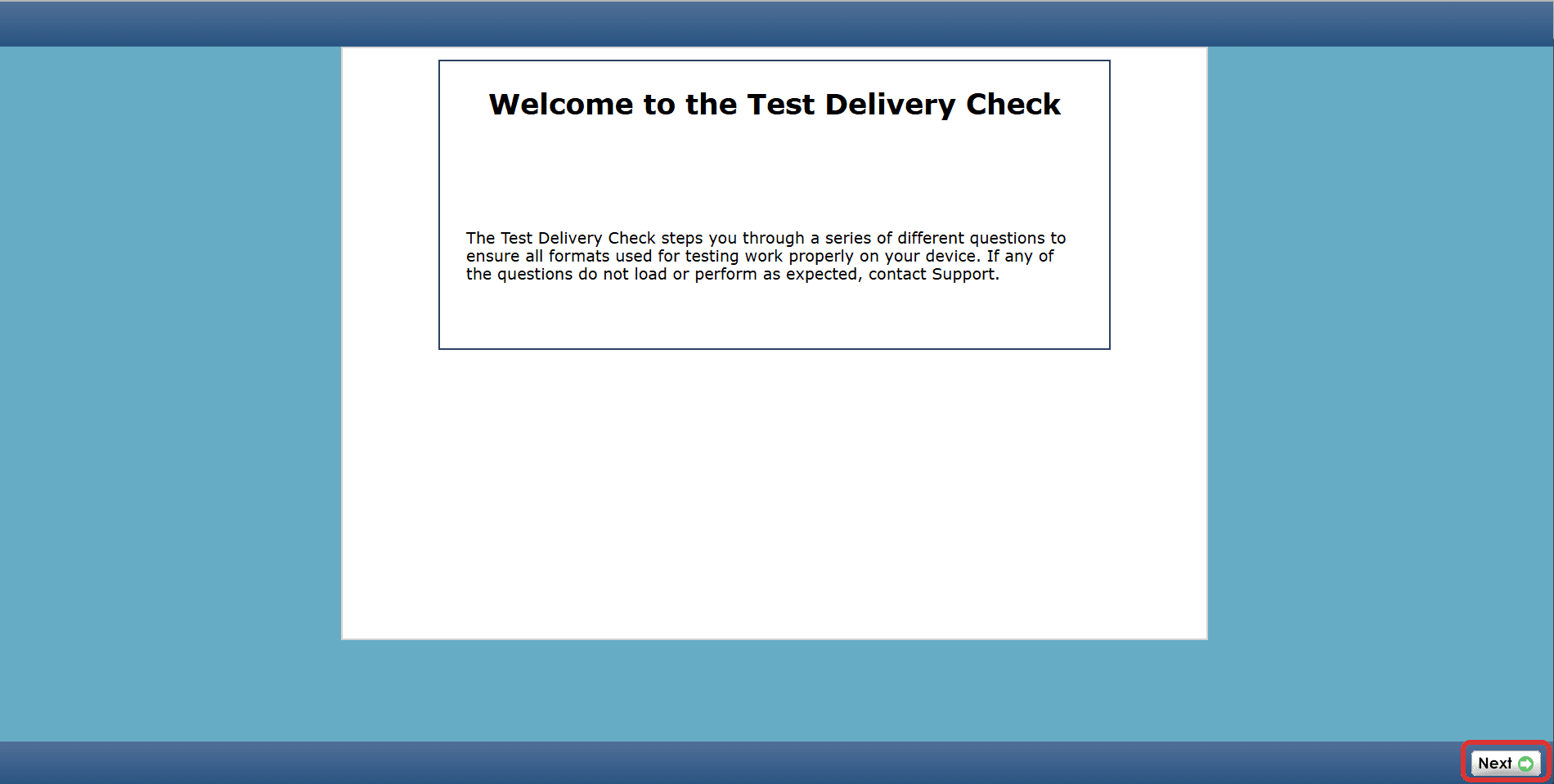 Jalankan Test Delivery Check untuk mencoba tes sampel. Tes ini mencakup contoh dari setiap jenis soal untuk memastikan perangkat Anda dapat menjalankan dan menampilkan tes dengan baik.